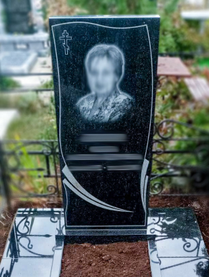 1. Комплект памятника из высококачественного гранита Габбро (стела 100×50×6 см, тумба 60×15×12 см, цветник 100×60 см).